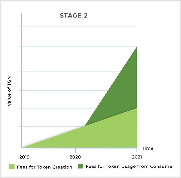The second stage introduces the consumers with energy tokens. In that way a new level of demand can be created, which will lead to a second revenue source and growth of TGN.